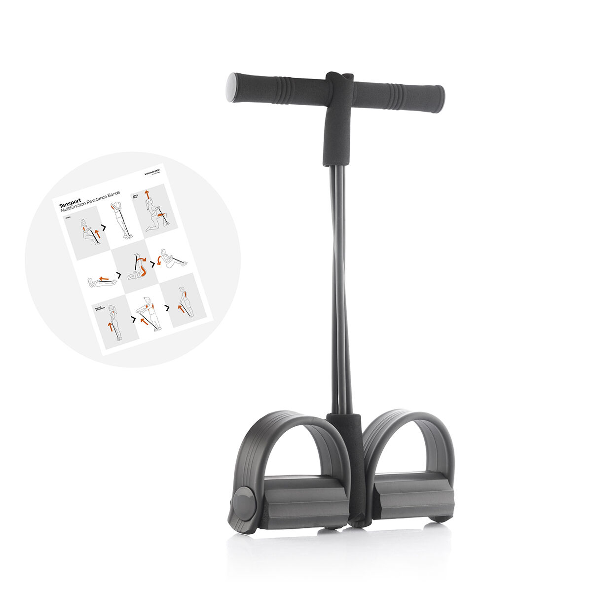 Elastiska träningsband som är perfekta för att få hela kroppen i form genom en mängd olika övningar (axlar, ben, midja, mage, rumpa etc.). Detta omfattande och multifunktionella träningssystem är mycket mångsidigt eftersom det kan användas i flera lägen (stående, liggande …). Det är lämpligt för alla nivåer och olika idrottsformer. Det kan dessutom användas hemma, utomhus, på kontoret och till och med på resan.