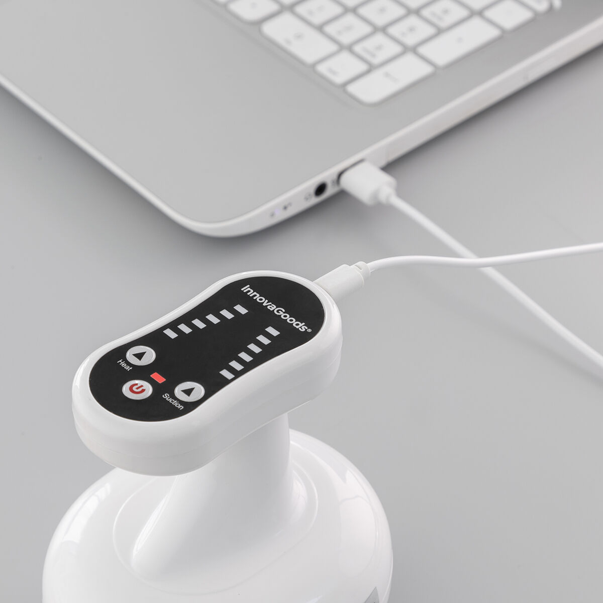 En cellulitmotverkande massageenhet med sug- och värmefunktion som är mycket effektiv för att bekämpa celluliter och slapp hud. Den har vakuumterapi-teknik med värmeeffekt för att ge ett bättre resultat. Den ergonomiska, bärbara och uppladdningsbara designen gör den enkel att använda och anpassar sig perfekt till varje kroppsdel. Den är mycket bekväm eftersom den inte har några pluggar eller kablar. Du förflyttar den helt enkelt över huden med långsamma och kontinuerliga rörelser. Den har olika sug- och värmeinställningar med ljusindikatorer och automatisk avstängning. Perfekt för ben, rumpa, midja, buk och armar. Den bör användas med olja eller lotion (medföljer ej) för att den ska glida lättare på huden. Den är enkel att rengöra och innehåller en extra lång USB till micro-USB-kabel, klämmor, lock och tvättbara extrafilter som förhindrar att lotion och olja tränger in i enheten, vilket därmed förhindrar skador.
